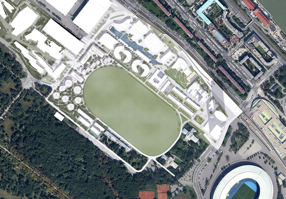 Die Freiraumgestaltung zeichnet sich durch einen die Quartiersmitte betonenden, zentralen Platz und eine modellierte Landschaft „Grüner Inseln“ aus. Mit spielerischer Leichtigkeit verdichten sich in einem fließenden Auf- und Ab sanfter Hügel und Täler unterschiedliche Grün- und Freiräume für Begegnung, Spiel, Entspannung und Infrastruktur zu einem starken atmosphärischen Bild eines zeitgemäßen Konzeptes von Architektur und Landschaft. Auf dem zentralen Platz findet dieses Bild seinen besonderen Ausdruck im Kommen und Gehen des Wassers in einem Fontänenspiel - geht das Wasser, so entsteht in Abständen eine frei benutzbare Platzmitte.